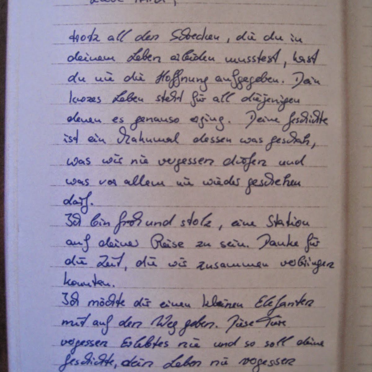 ← Auf Wiedersehen kleine Hana und gute Reise – Hana´s Koffer – Gegen das Vergessen
