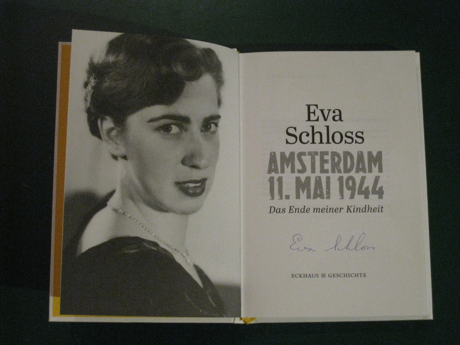 Da sitzt man am frühen Morgen vor Anja Schmidts Artikel zu einer besonderen Lesung "Gegen das Vergessen" und versinkt in ihren Worten, weil wir auch vorher über die Autorin und Zeitzeugin gesprochen haben.Es handelt sich um Eva Schloss und ihr Buch – "Amsterdam 11. Mai 1944 Das Ende meiner Kindheit". Insider wissen, dass Eva die Stiefschwester von Anne Frank ist, weil Annes Vater ihre Mutter nach dem Krieg heiratete. Und sie war eine gute Freundin von Anne mit einer ganz eigenen Geschichte.Und plötzlich klingelt es an der Tür. Ein Paket wird abgegeben und mir fällt beim Öffnen das oben genannte Buch mit der Signatur der Autorin und einem Brief von Anja in die Hände.Ein Gefühl, als würde eine Rezension aus dem Computer fallen. Unfassbar… und vieles mehr… .Danke, Anja