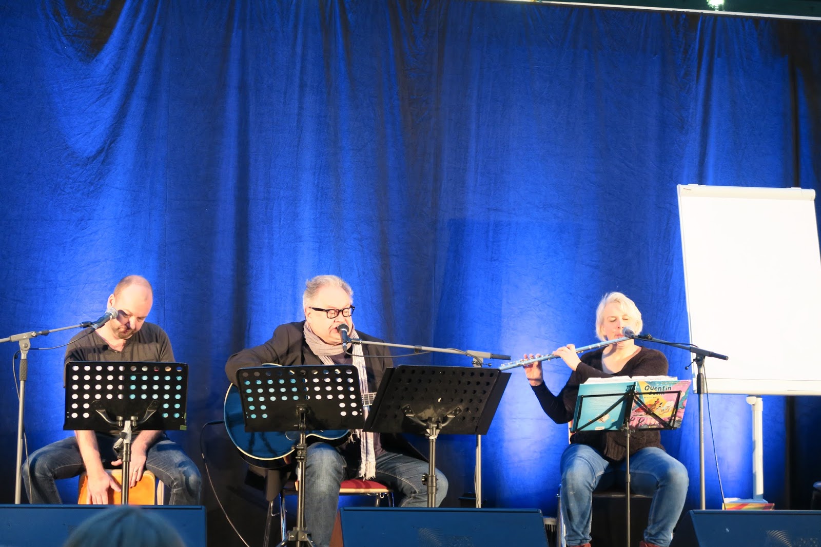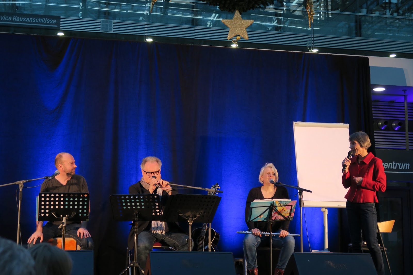 Heinz Rudolf Kunze lies gemeinsam mit dem Autor und Musiker Jens Carstens und der Illustratorin Julia Ginsbach Quentin Qualle auf der Bühne lebendig werden. Es folgte eine Mitmachlesung der besonderen Art.